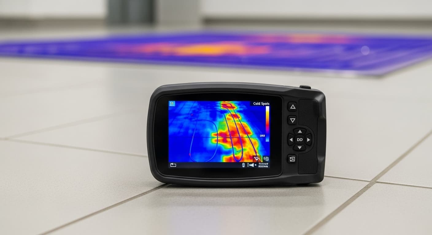 Kaltstellen im Boden, einzelne Räume heizen nicht, der Boden bleibt trotz laufender Heizung kalt. Wir finden die Ursache systematisch, messen Temperaturen und Durchflussmengen pro Heizkreis und beheben das Problem dauerhaft.