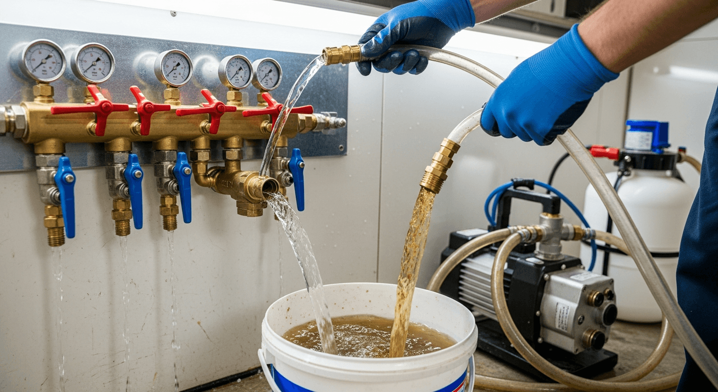 Wer nach einer Modernisierung auf die Spülung verzichtet, riskiert, dass die neue Anlage von Anfang an mit verunreinigtem Wasser betrieben wird.